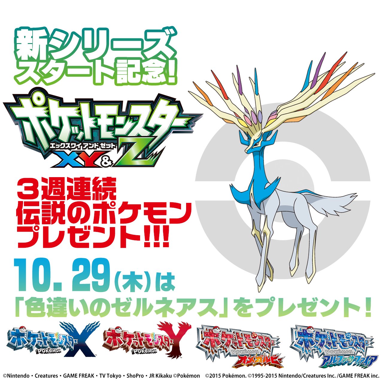 Twitter 上的 ポケモン映画公式ツイッター Tvアニメ ポケットモンスター Xy Z 本日の放送より3週連続で 伝説のポケモンをゲームにプレゼント 今週は 色違いのゼルネアス テレビ東京系で夜7時から お見逃しなくhttps T Co 5v6eyaabbm アニポケ T